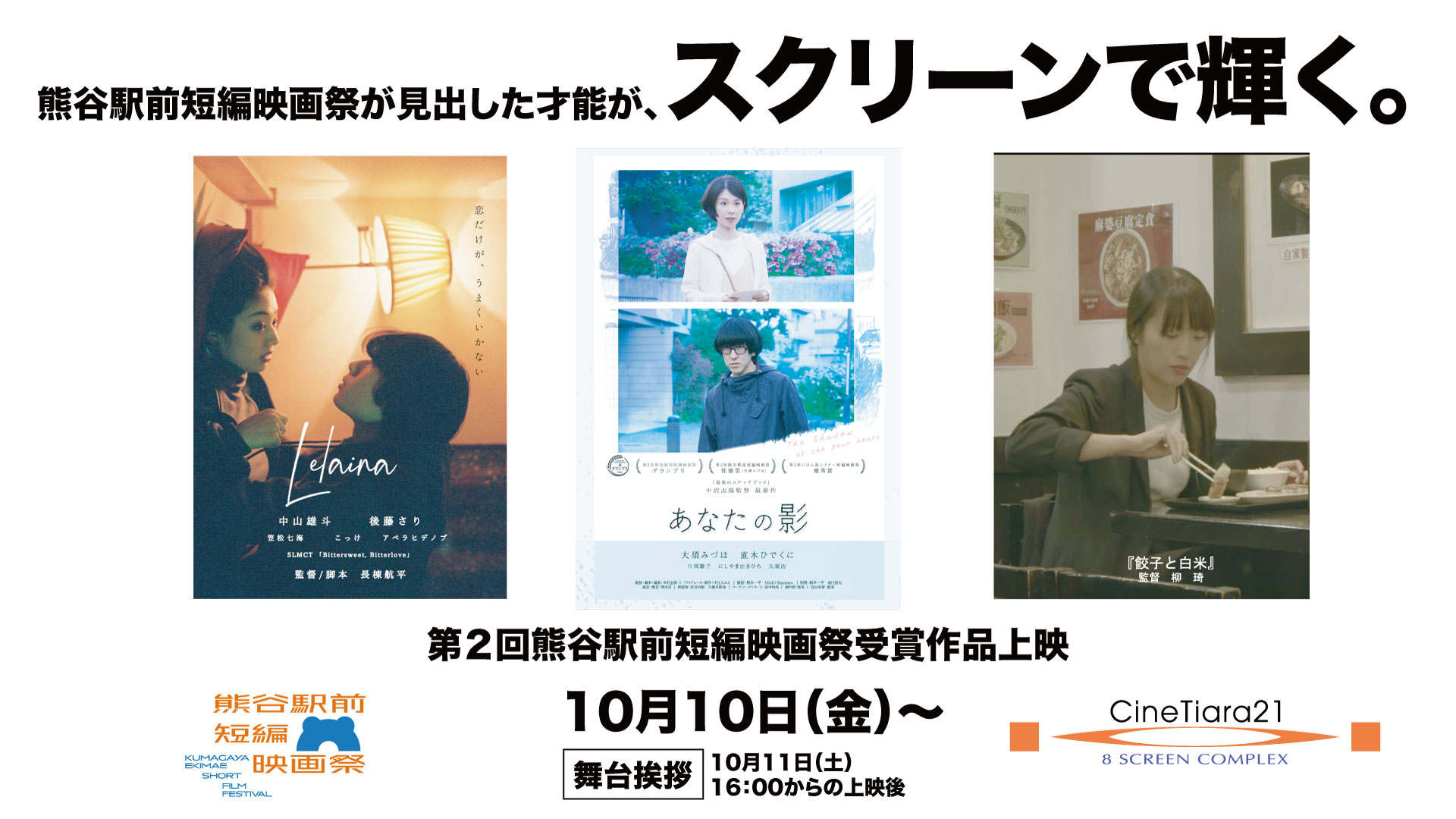 埼玉県熊谷市で開催される、熊谷駅前短編映画祭では、受賞した作品の一部を商業映画館で商業上映を行います。2025年10月10日からシネティアラ21で以下の3作品を上映します…