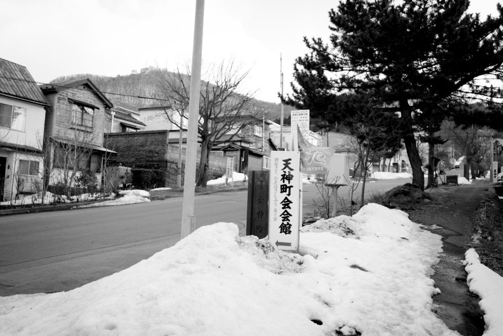 駅に着いた。海の近くのはずだが、海は見えなかった。海の方向には造船工場や倉庫が立ち並び、反対側には函館山へと続く丘陵地が広がっている。天神町は、その丘陵の中腹に位置しているはずだ。まだ雪の残る坂道を上っていく。